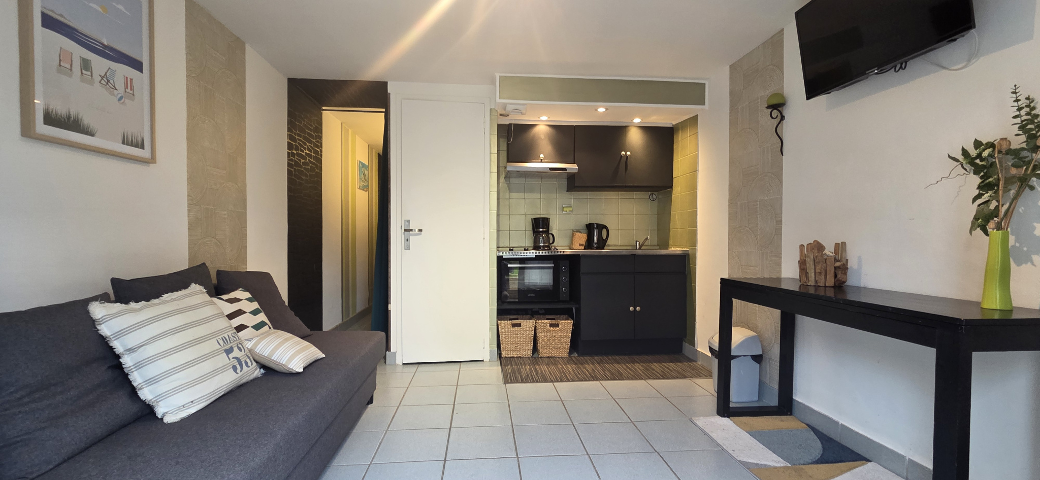 Le logement se compose d’un séjour avec coin cuisine aménagé et équipé, d’une salle d’eau avec WC.