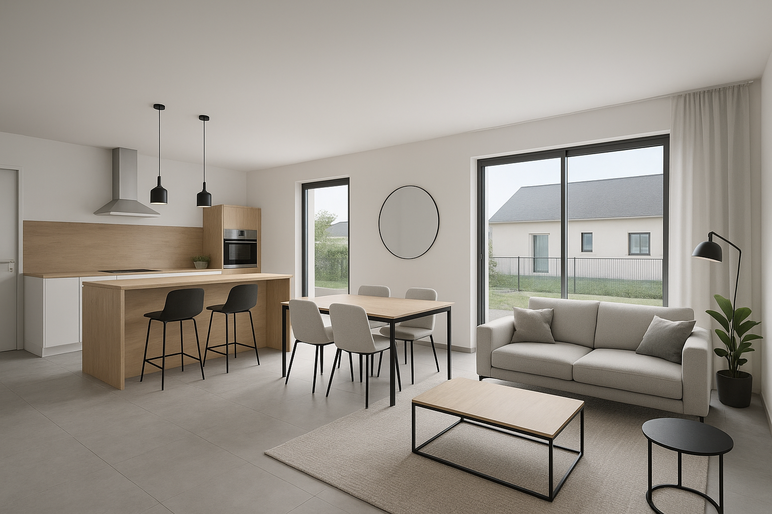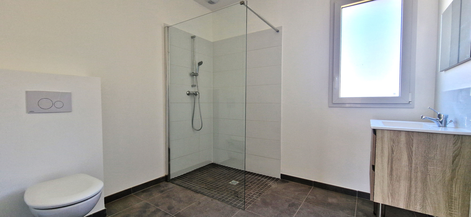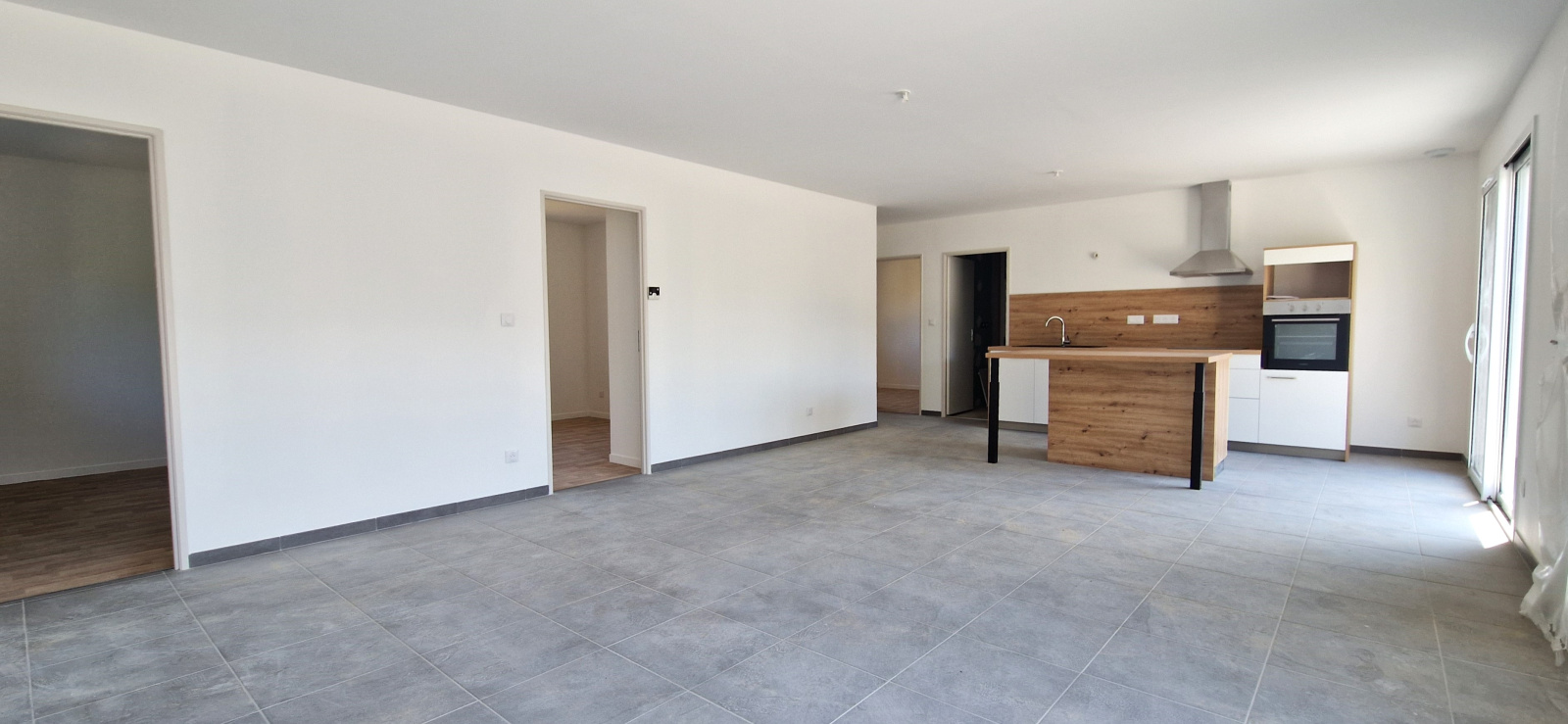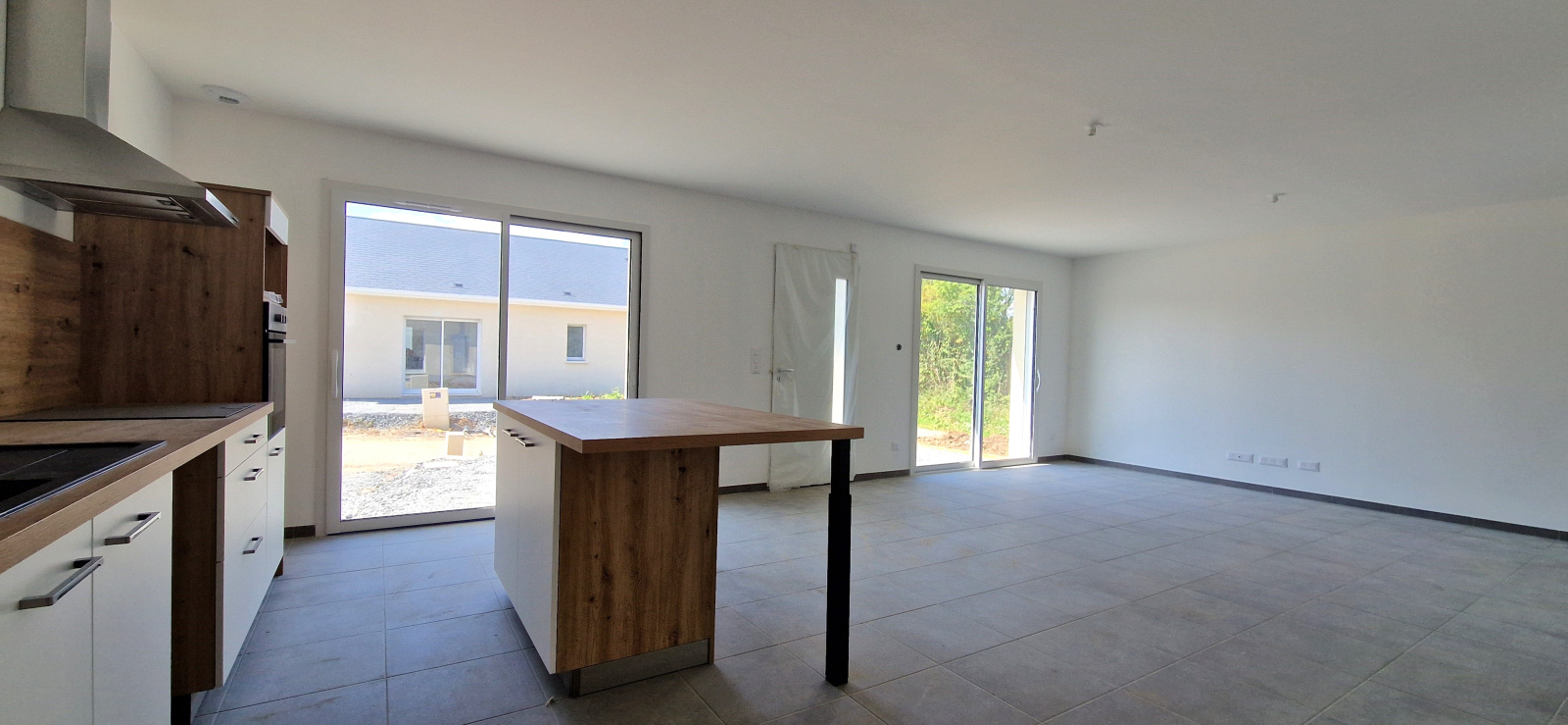 Nous vous proposons cette maison de plain-pied d'environ 80m² composée d'un séjour avec cuisine ouverte aménagée et équipée (36m²), 3 chambres, salle d'eau avec WC et autre WC indépendant.