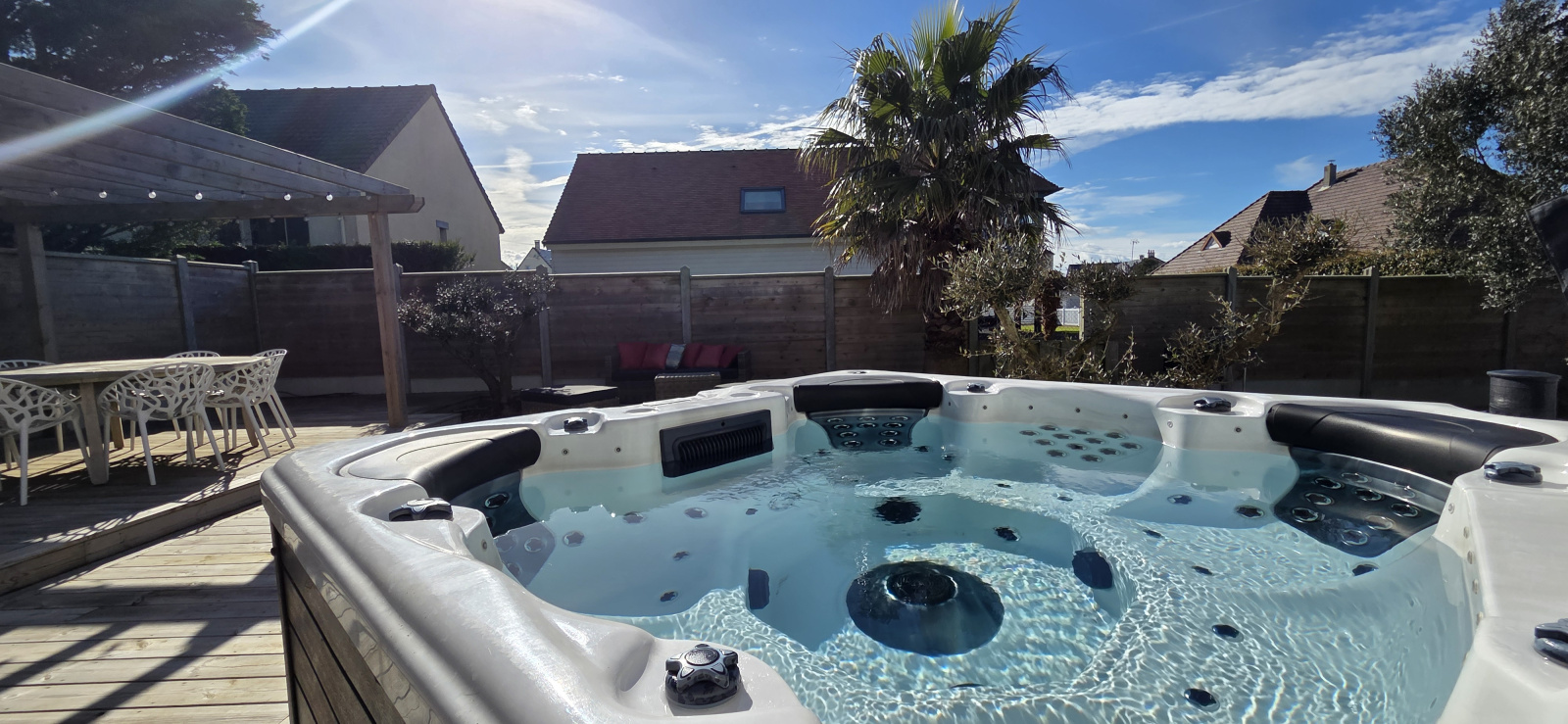 À l’extérieur, vous profiterez d’une superbe terrasse en bois, exposée ouest et récemment réalisée, ainsi que d’un jardin agréable.