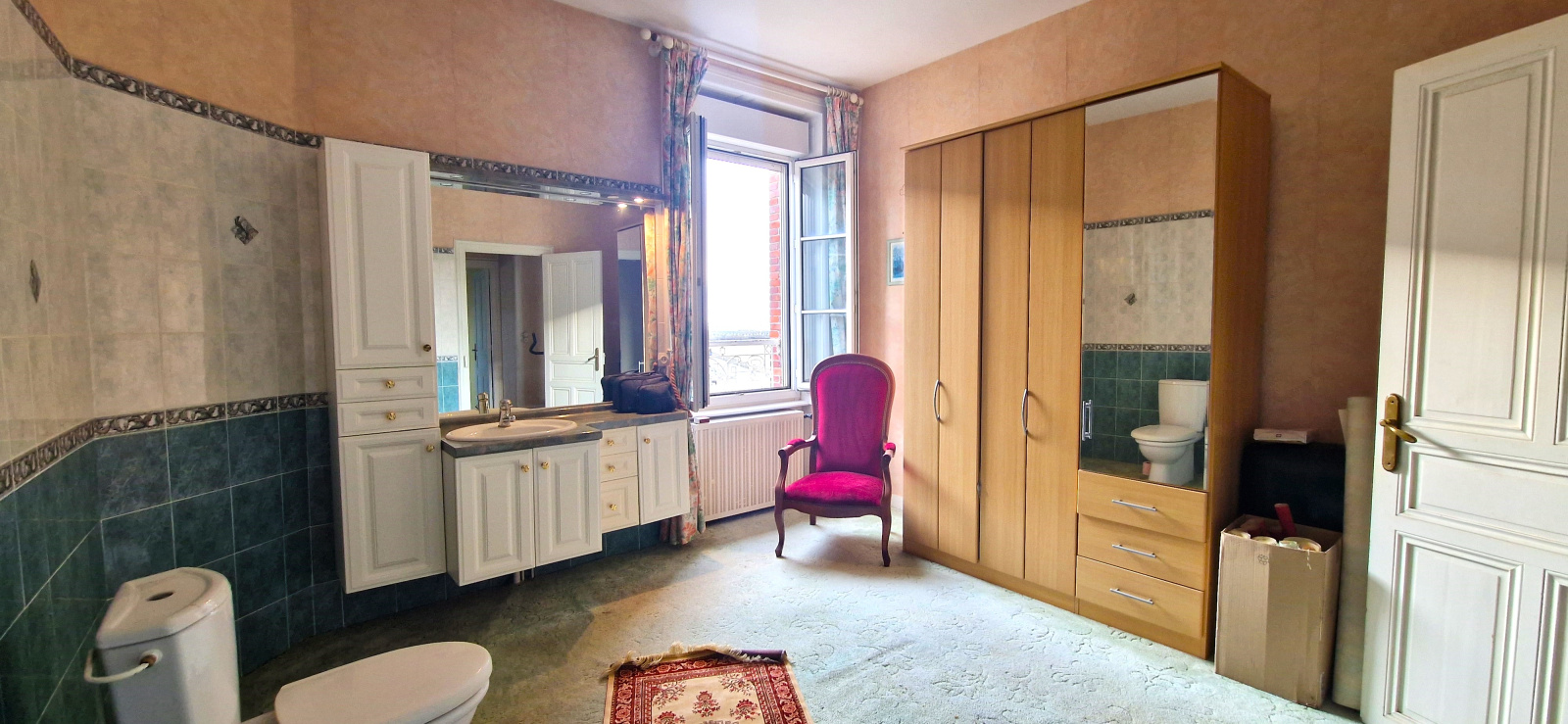 A l'étage, palier desservant deux chambres, un bureau, et une salle de bains avec WC.