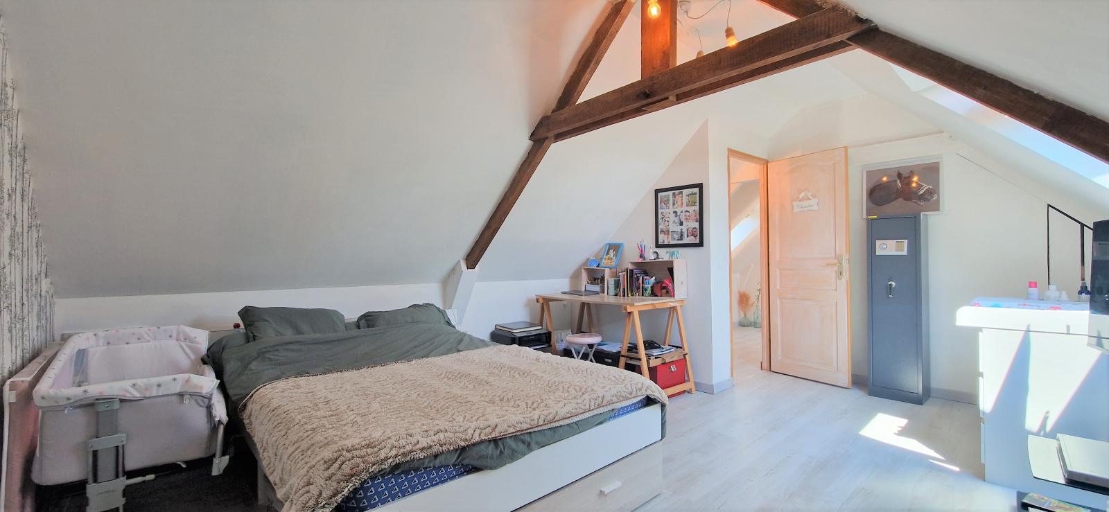 A l'étage, un palier dessert 2 chambres et WC.