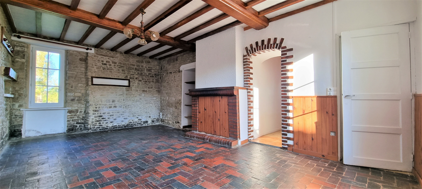 Sur la commune d'Osmanville, située au fond de son impasse, maison de 66m² environ offrant une vie de plain-pied composée d'un séjour, cuisine, 2 chambres, salle d'eau et WC.