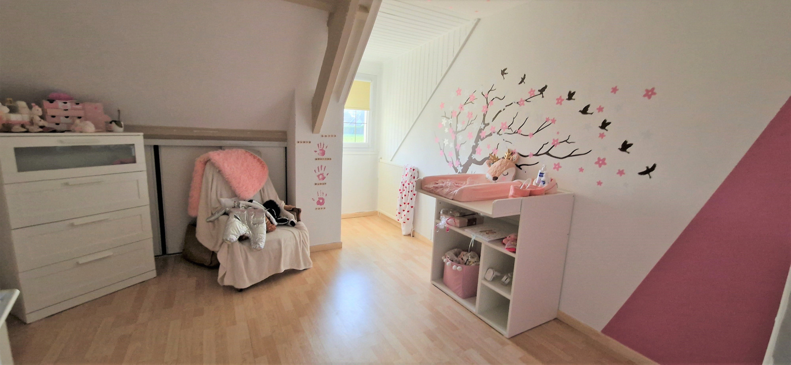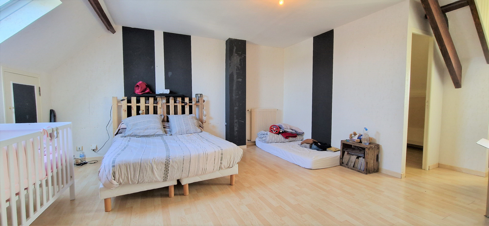 A l'étage, 3 chambres dont une avec dressing et une avec cabinet de toilette. Egalement une salle d'eau avec WC.
