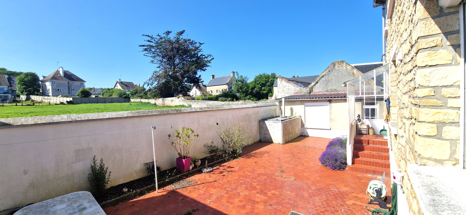 A l'arrière, cour plein sud sans vis-à-vis de 90m² avec dépendance, cuisine d'été et garage !