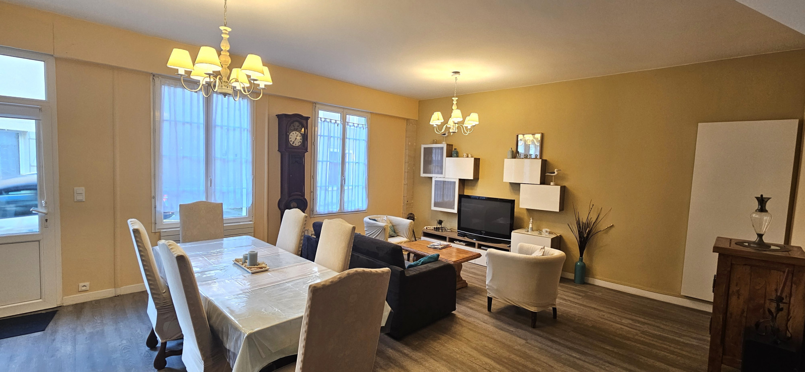 Au rez-de-chaussée, vous découvrirez un grand séjour lumineux de 35 m², une cuisine aménagée et équipée, une buanderie ainsi que des WC.
