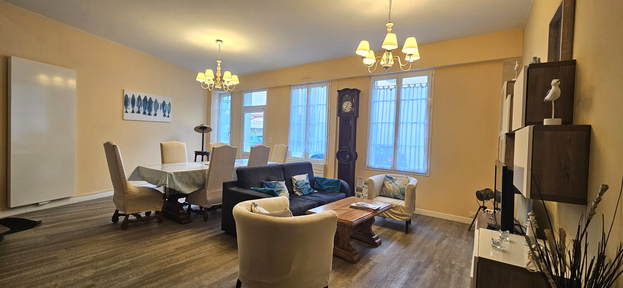Idéalement située en plein centre-ville de Grandcamp-Maisy, au pied de la mer, cette charmante maison entièrement rénovée offre un cadre de vie recherché, entre commodités et littoral.