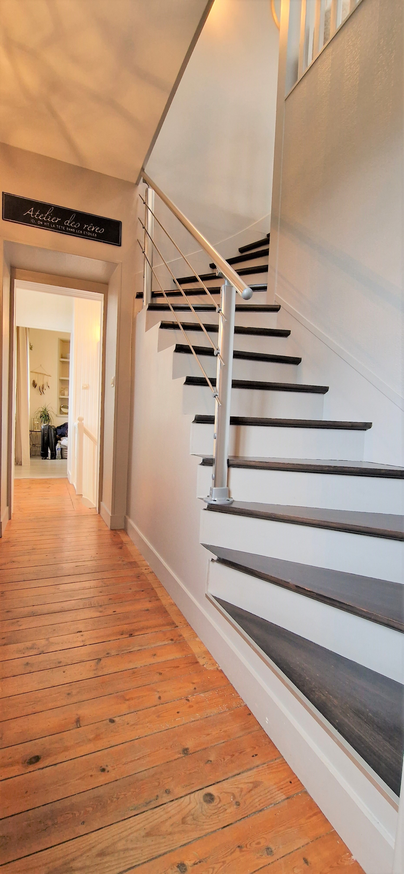A l'étage, un couloir offre l'accès à 2 chambres, dressing et salle de bains avec WC.