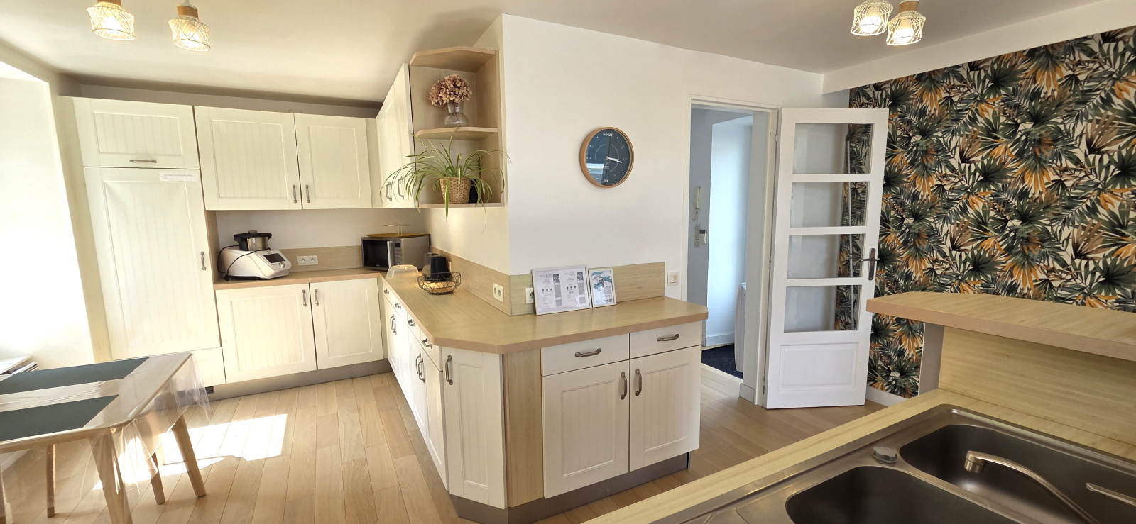 Implantée sur son terrain entièrement clos d'environ 460m², elle se compose d'une entrée desservant d'un côté un vaste séjour de 40m² avec cuisine ouverte aménagée et équipée et de l'autre un salon avec cheminée, buanderie avec salle d'eau et WC.