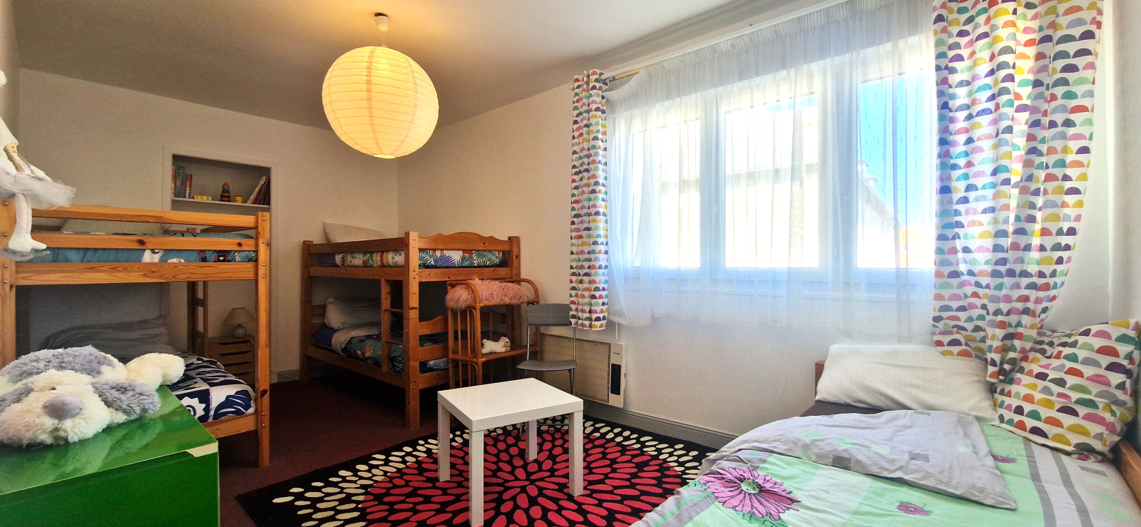 Le gite, quand à lui secompose d'un séjour avec cuisine ouverte et salle d'eau en rez-de-chaussée et 3 chambres et salle d'eau à l'étage.