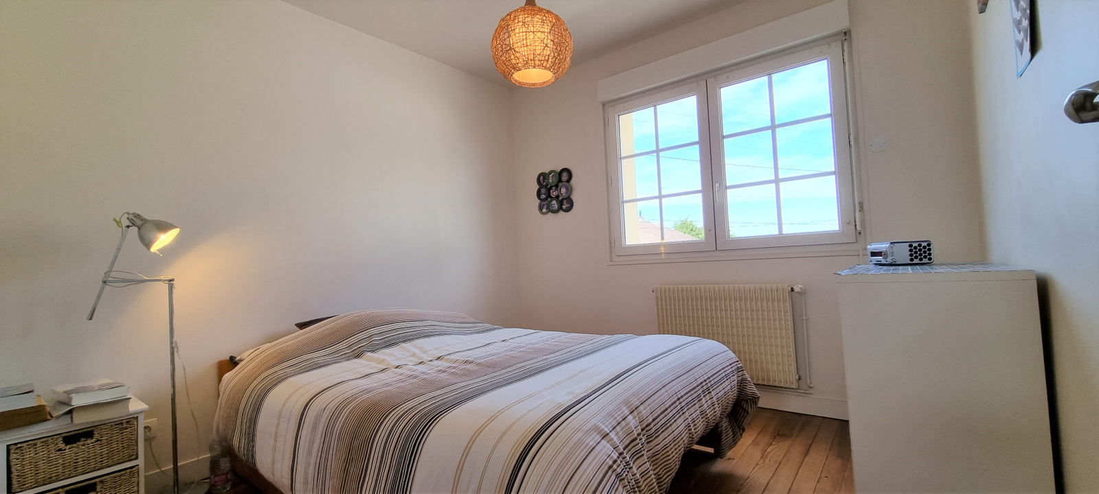 A l'étage, un vaste palier offre l'accès à 2 chambres et une salle d'eau avec WC. Egalement une pièce supplémentaire peut être aménagée en chambre.