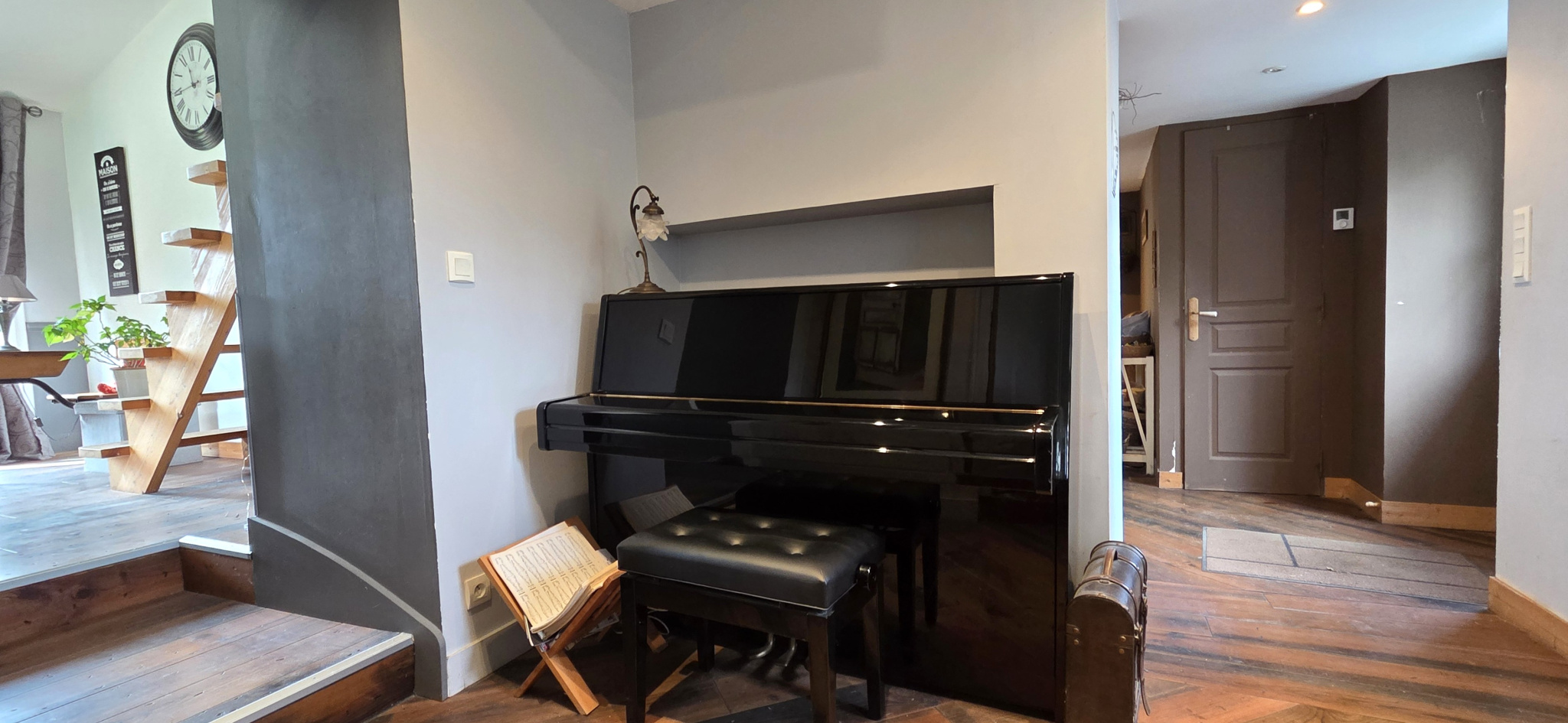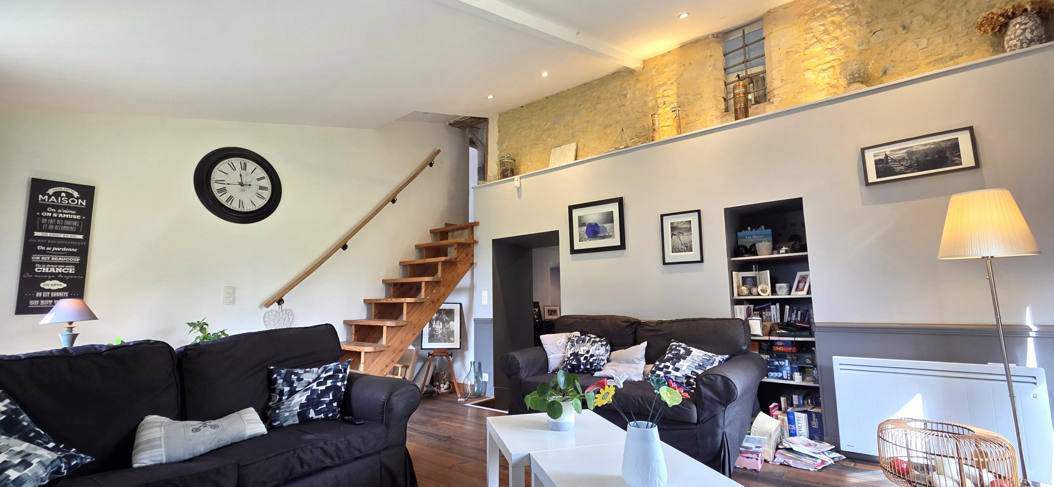 Par son superbe escalier en pierre, vous allez accéder à un palier désseravnt 3 chambres spacieuses et un salon (servant de salle de billard). Au dessus, une mezzanine pouvant être transformée en chambre supplémentaire.