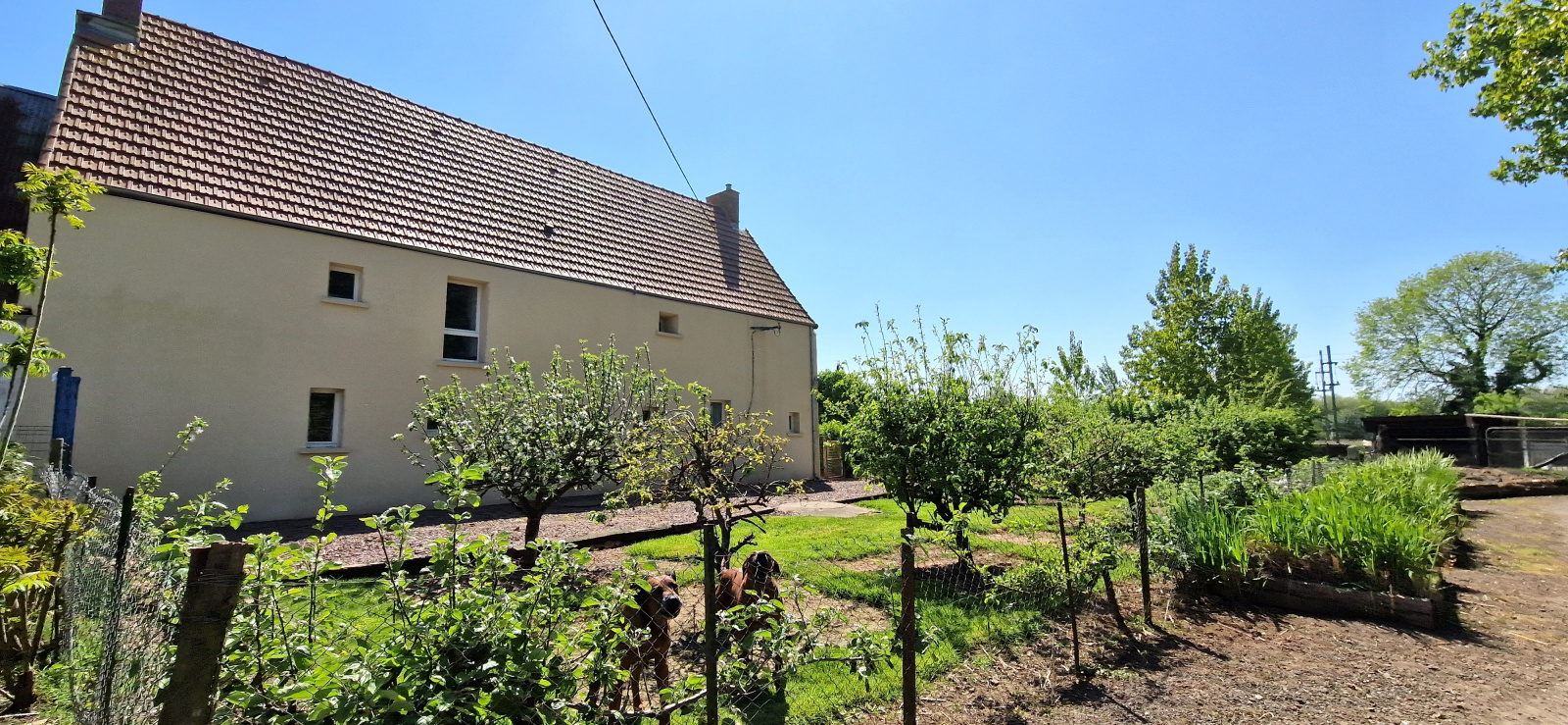 Immobilier Saint Marcouf vous propose ce bien, situé au calme absolu, au fond d’une impasse et sans aucun vis-à-vis. Ce corps de ferme est situé à Neuilly-la-Forêt, dans un environnement naturel exceptionnel, entièrement entouré de ses propres terres.