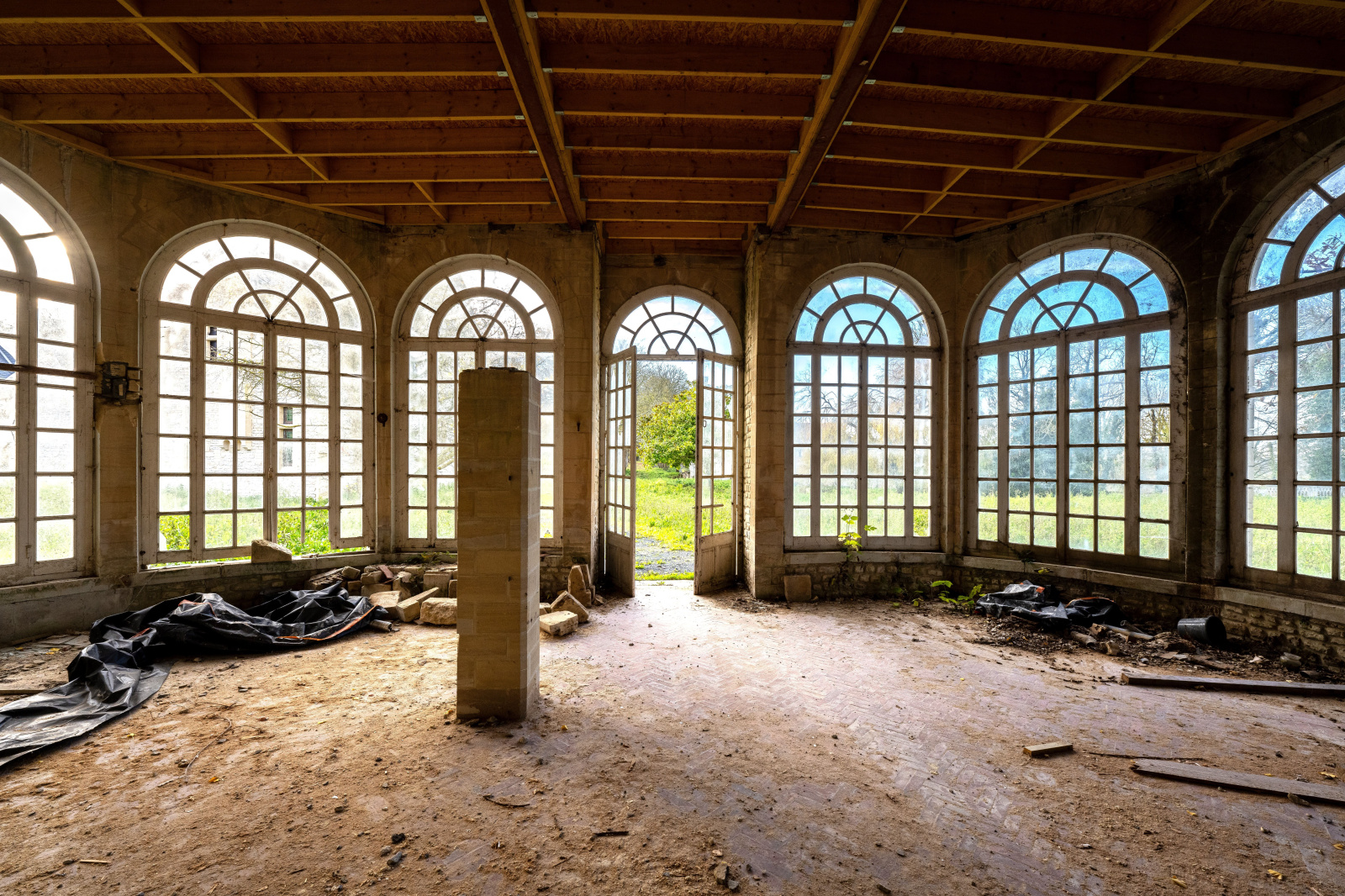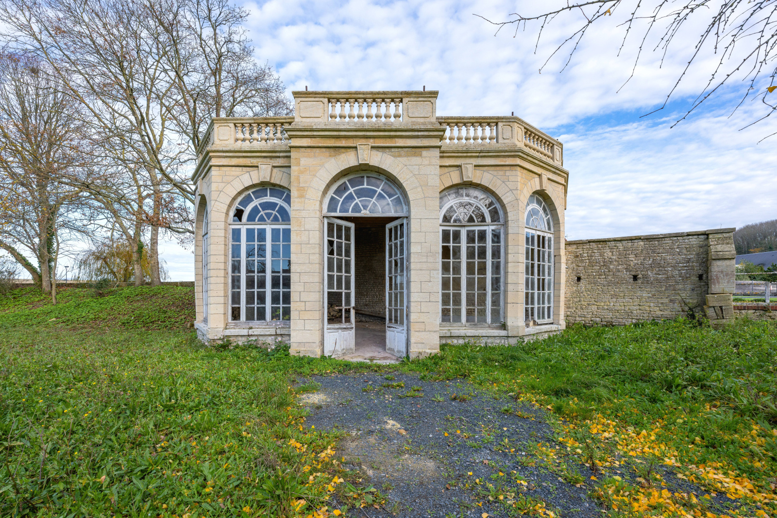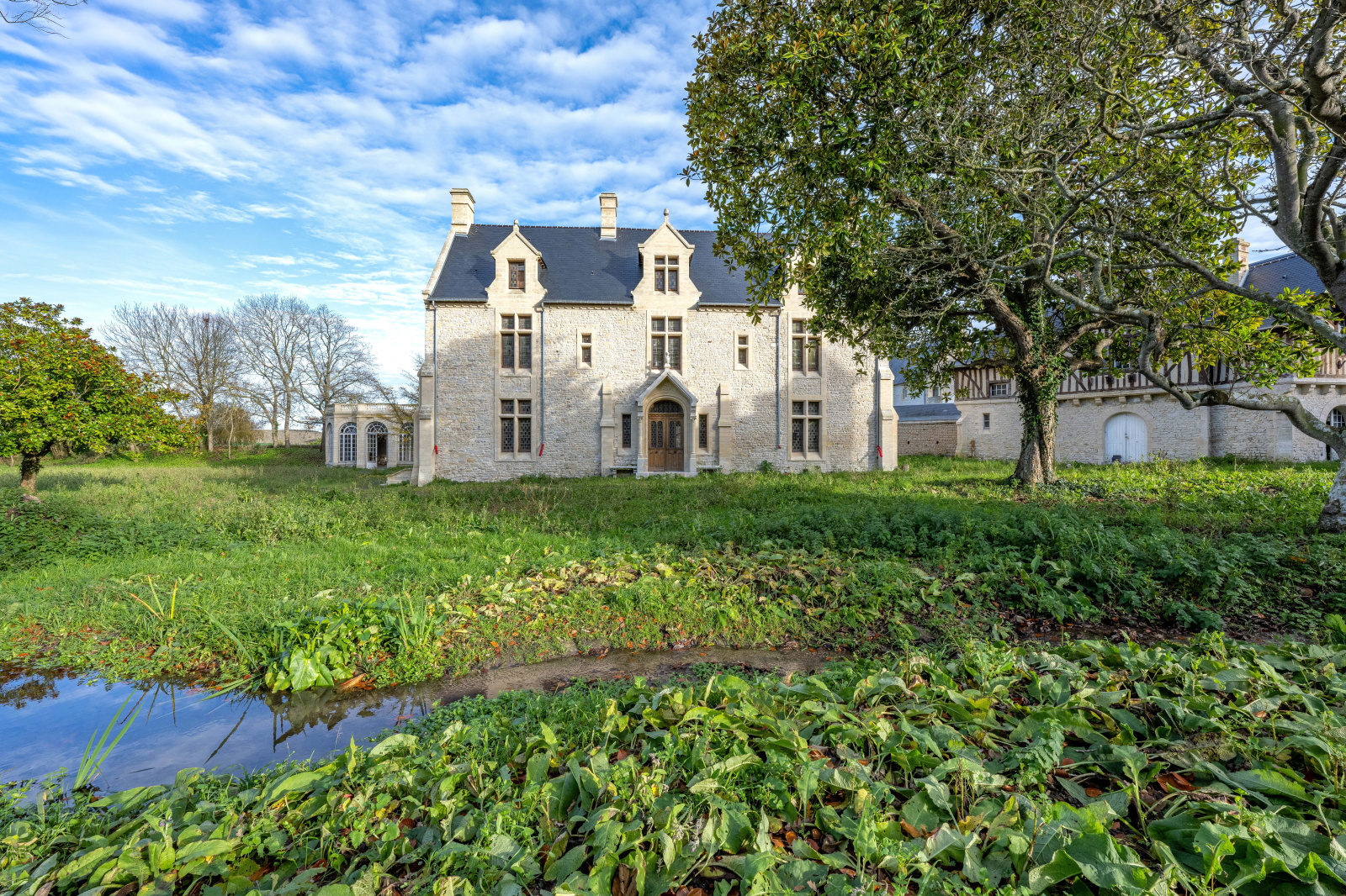 Le tout traversé par une douve au centre d'un parc arboré.