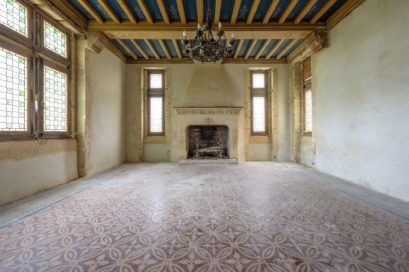 Le manoir se déploit sur 3 niveaux et se compose de très belles pièces avec importante hauteur sous plafond, cheminées, vitraux et carreaux de ciments.