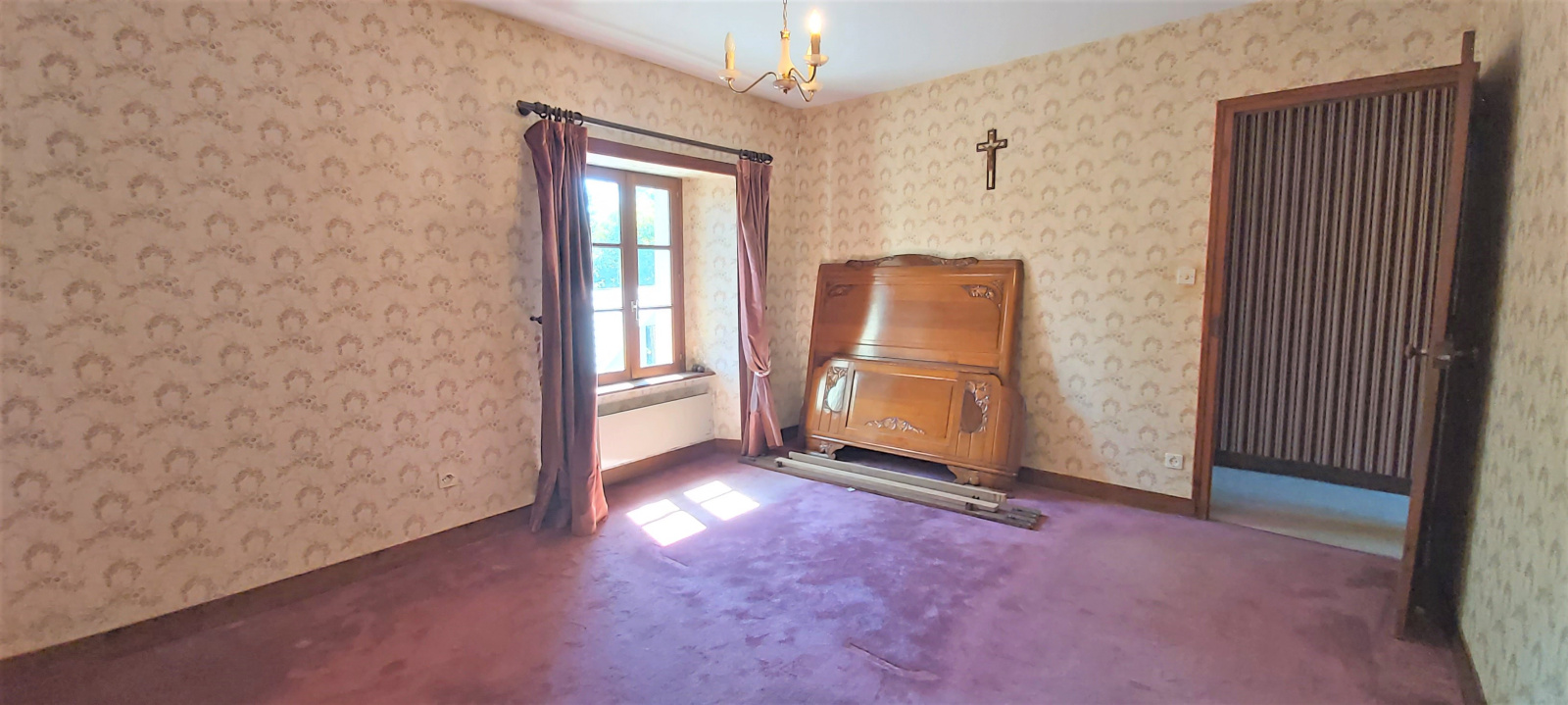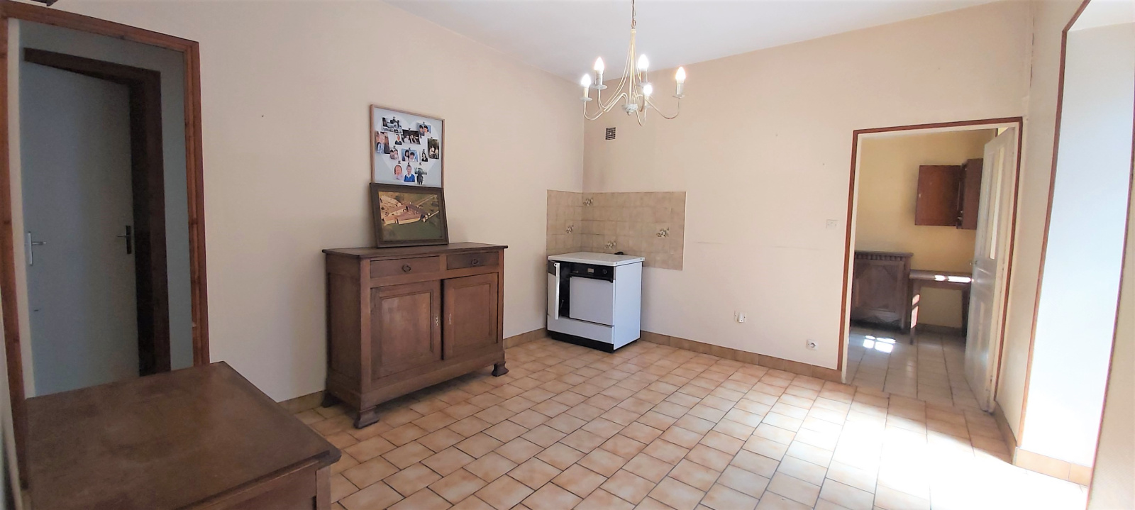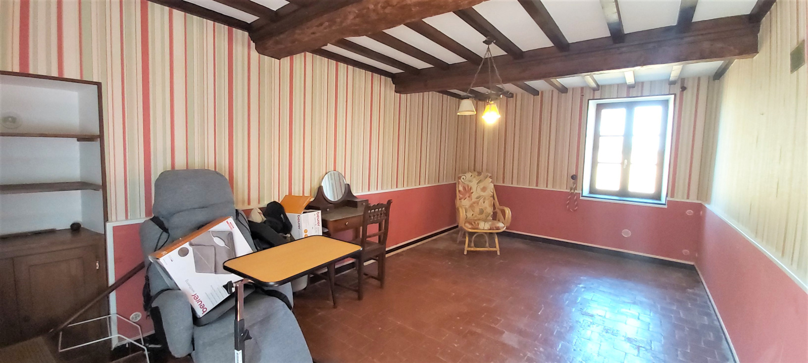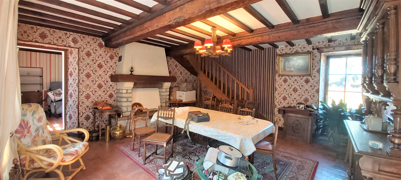 Elle se compose au rez-de-chaussée d'un séjour, un salon d'environ 30 m² avec cheminée, une cuisine, une salle d'eau, une chambre et un WC.