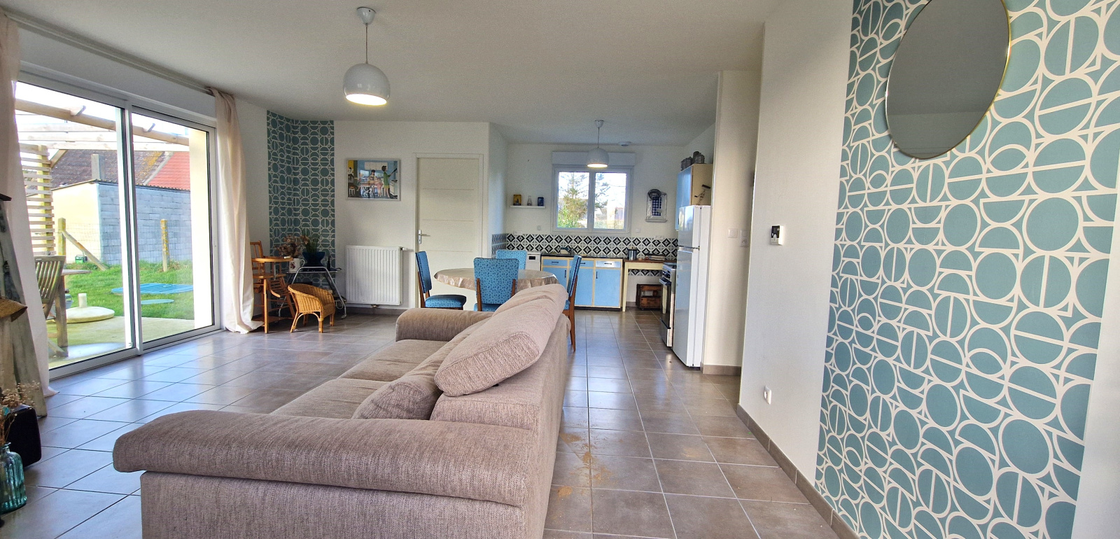 Entre terre et mer, située sur la commune de Gefosse à 5mn de GRANDCAMP-MAISY, l'agence St Marcouf vous présente cette maison édifiée en 2022. Elle se compose d'un séjour d'environ 40m² avec son coin cuisine.