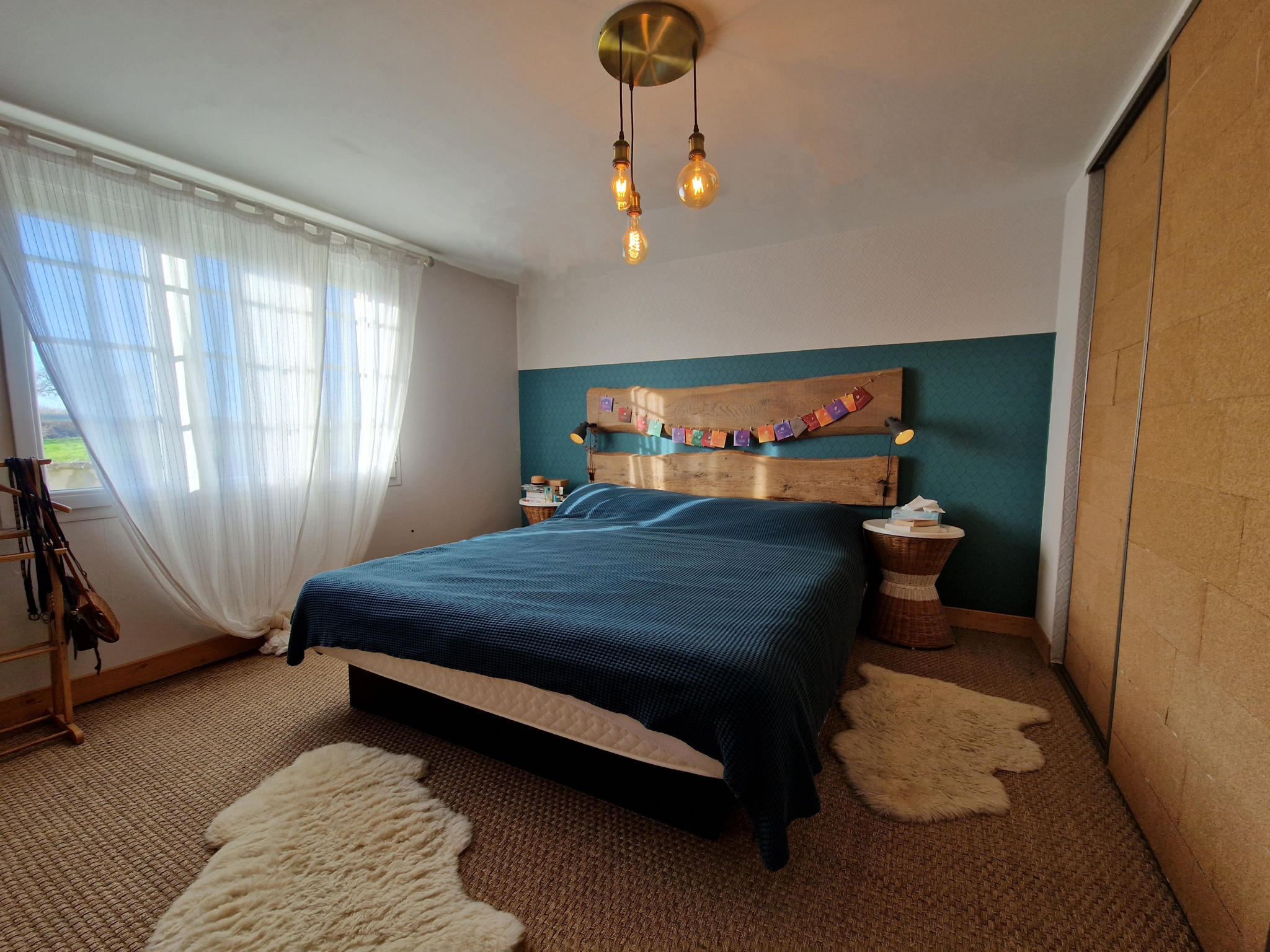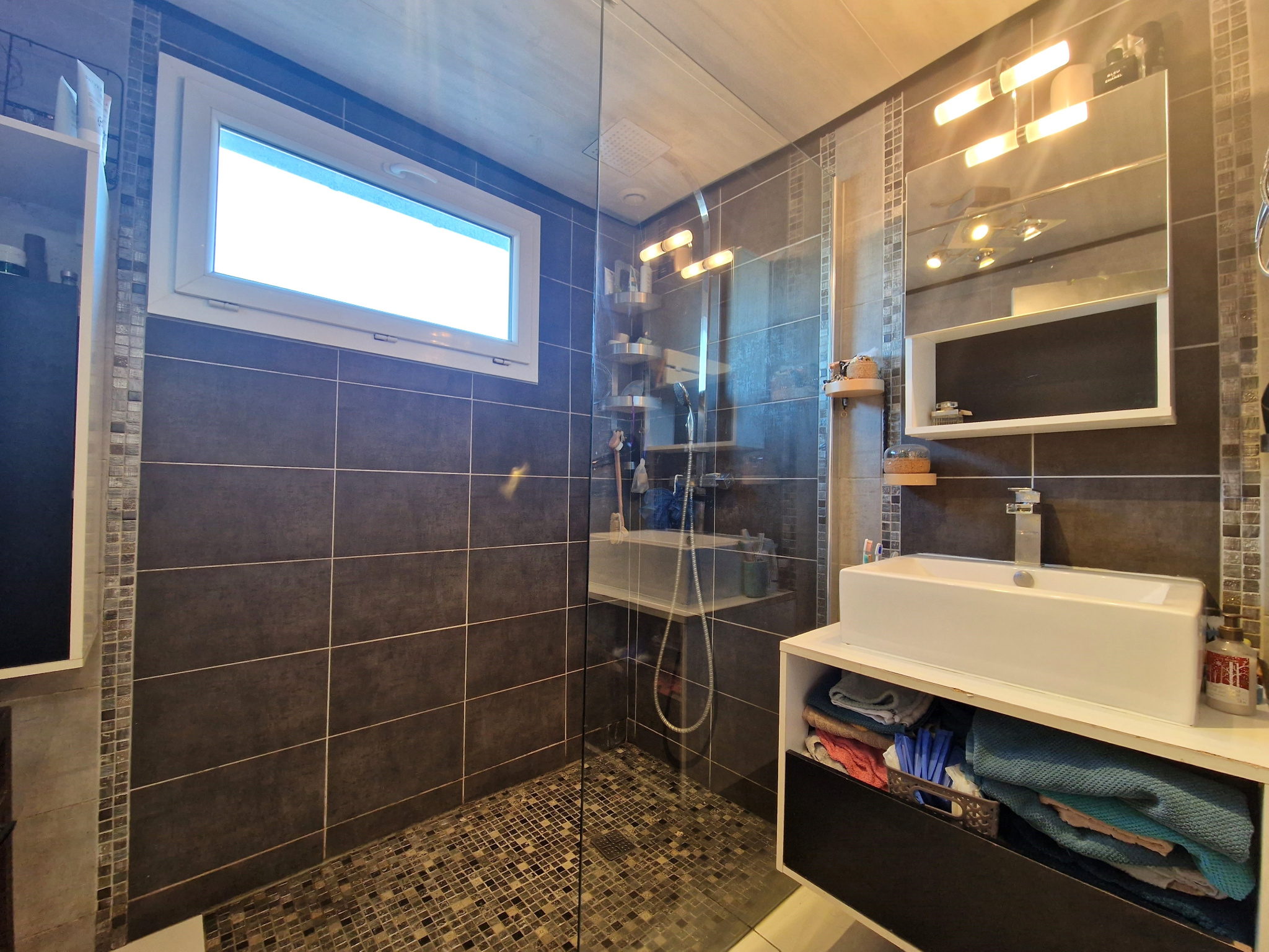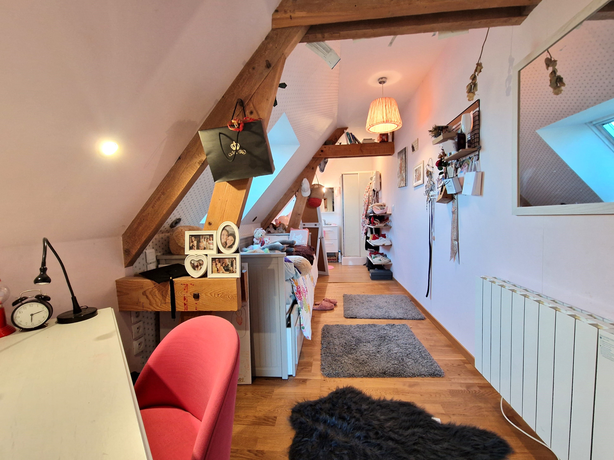 L’étage s’ouvre sur un palier desservant deux chambres, chacune disposant de sa propre salle d’eau.
