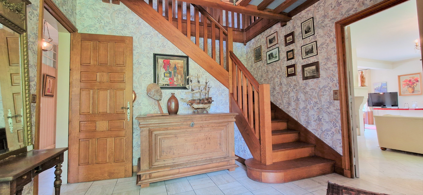 A seulement 2mn de BAYEUX, implantée sur son magnifique parc de 2679m² traversé par l'AURE, venez découvrir cette spacieuse maison d'environ 296m².