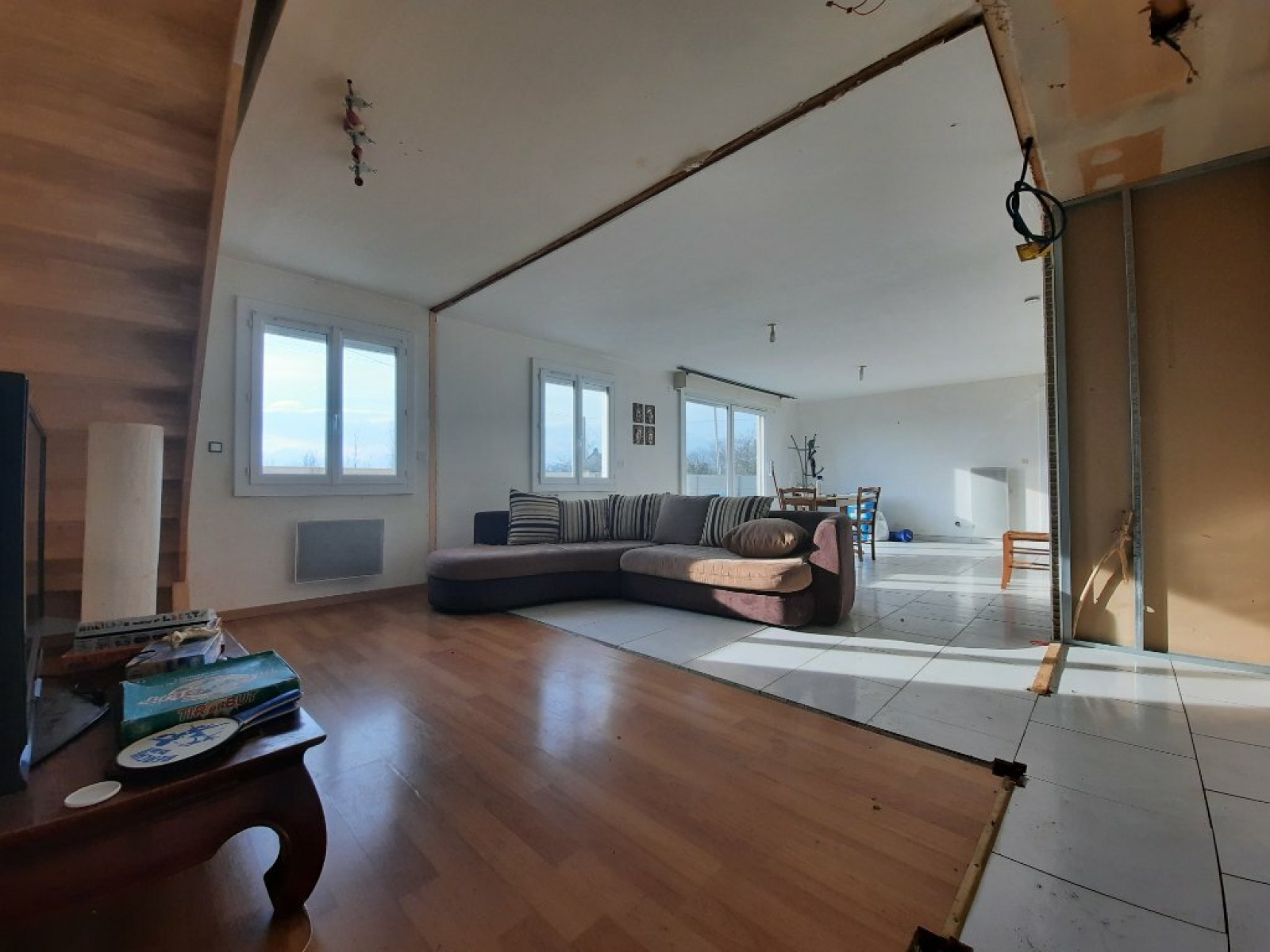 Pavillon situé sur la commune de CARDONVILLE, 6 km de la plage et des commerces. Maison offrant une vie de plain pied avec au rez-de-chaussée une entrée ouverte sur la cuisine et le séjour, un dégagement donnant accès à la salle d'eau et au WC, une chambre. L'étage a été aménagé il y a 3 ans, et comprend : un couloir desservant 2 chambres, un bureau, une pièce prévue pour une salle d'eau , WC. Garage attenant. Maison à terminer ! Terrain d'environ 870 m².